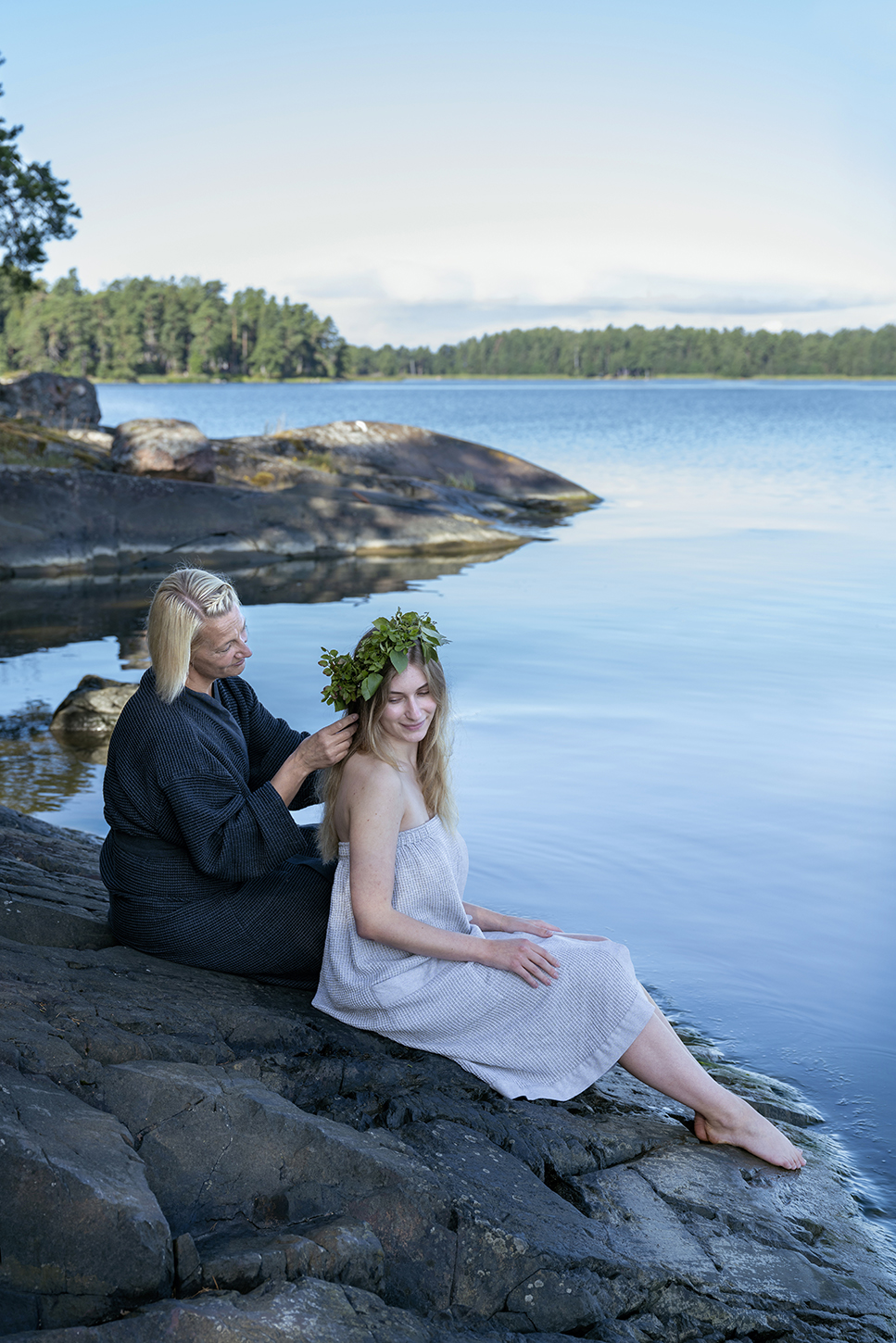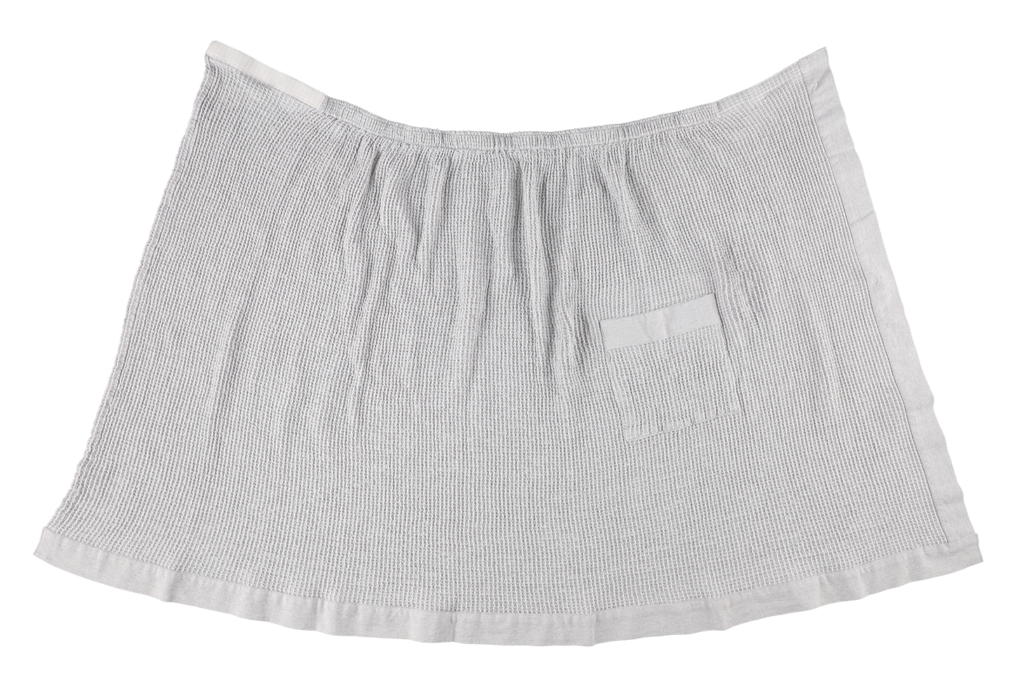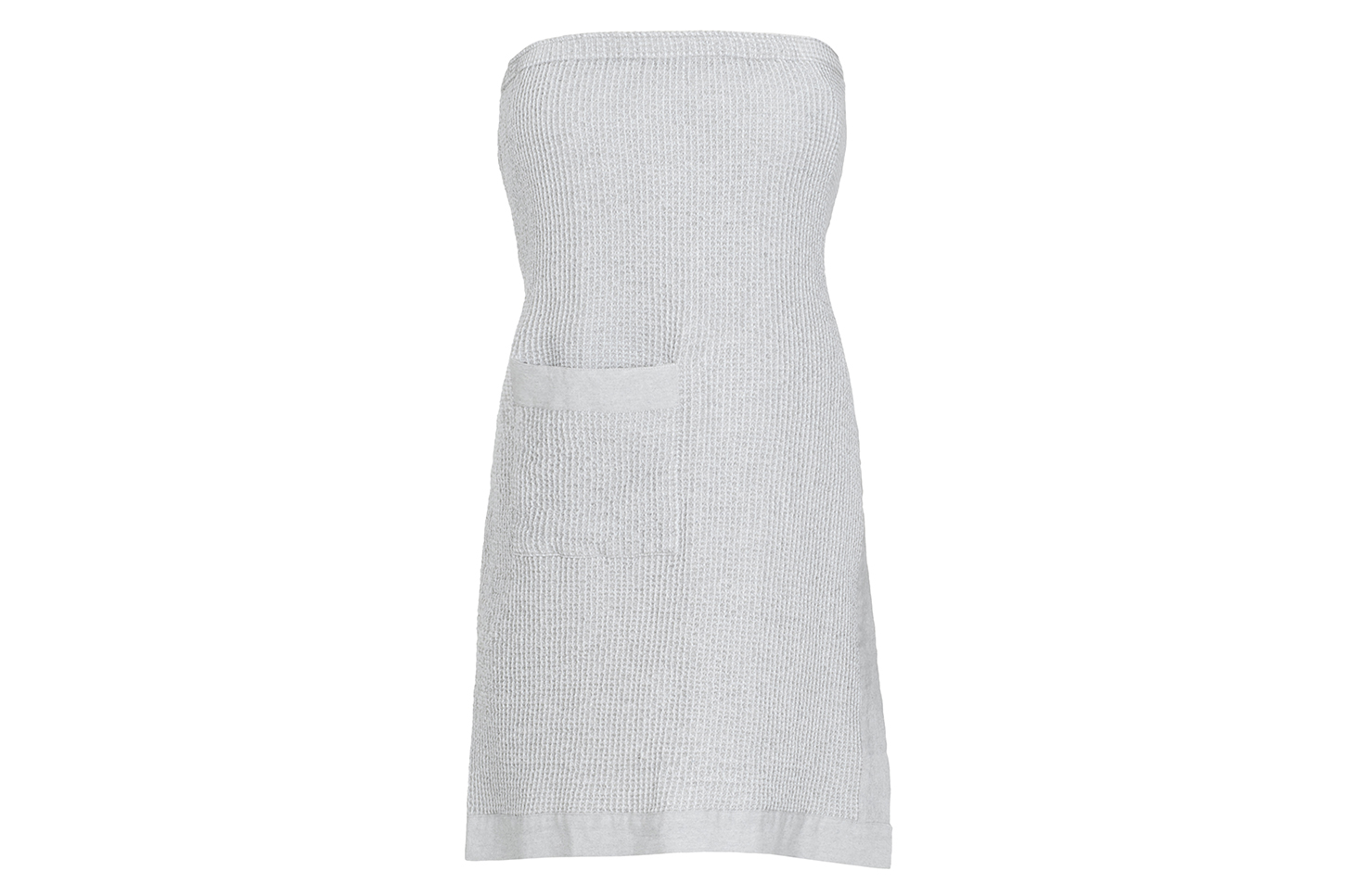 Kietaisupyyhe on rento ja vaivaton asuste. Kierrätyspuuvillaisille Kenno-saunatekstiileille on ominaista kankaan pehmeys ja eloisa tekstuuri. Leveät chambray-kanttaukset puolestaan antavat tuotteille lokoisan luonteen. Tarranauhakiinnitys.